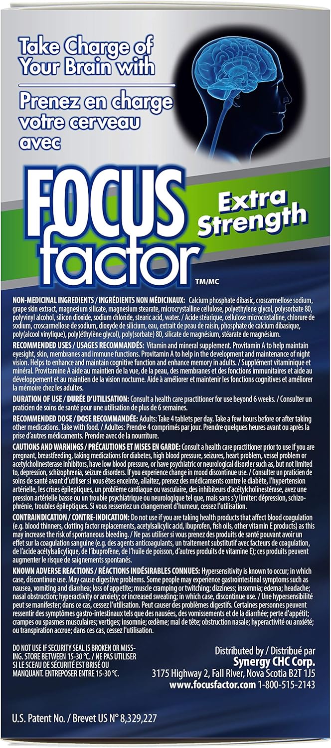 Focus Factor Extra Strength 60ct Multivitamin Supplement With Vitamin B6 B12 D3 Zinc Phosphatidylserine Bacopa Monnieri Ginkgo Biloba Dmae To Enhance Memory Cognitive Function In Adults Amazon Ca Health